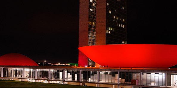 O Congresso Nacional foi iluminado de vermelho na noite da última quinta-feira (16), em uma ação comemorativa pelos 25 anos da Política Nacional de Sangue, Componentes e Hemoderivados. A projeção de imagens e frases na fachada do prédio destacou a criação dessa política pública, que organizou a hemoterapia no Brasil e consolidou o cuidado com doadores e pacientes.